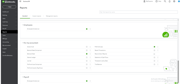 The following 17 reports can be generated, exported, saved and printed in QuickBooks Online:
