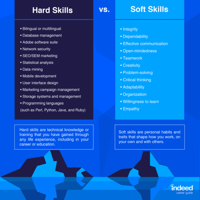 Think of hard skills as more quantifiable and binary. You can generally measure the work product that results from hard skills’ capabilities ― for instance, the candidate either knows a computer program or does not.