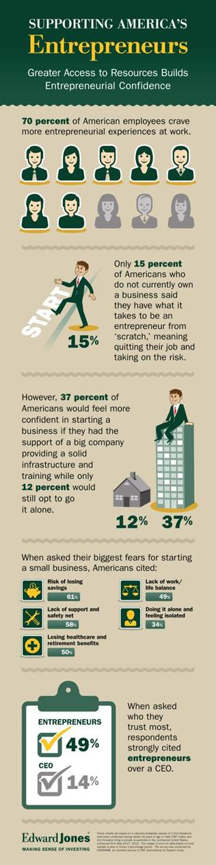 The research also found that almost more workers trusted entrepreneurs than a CEO. More information can be found in the below infographic compiled by Edward Jones.